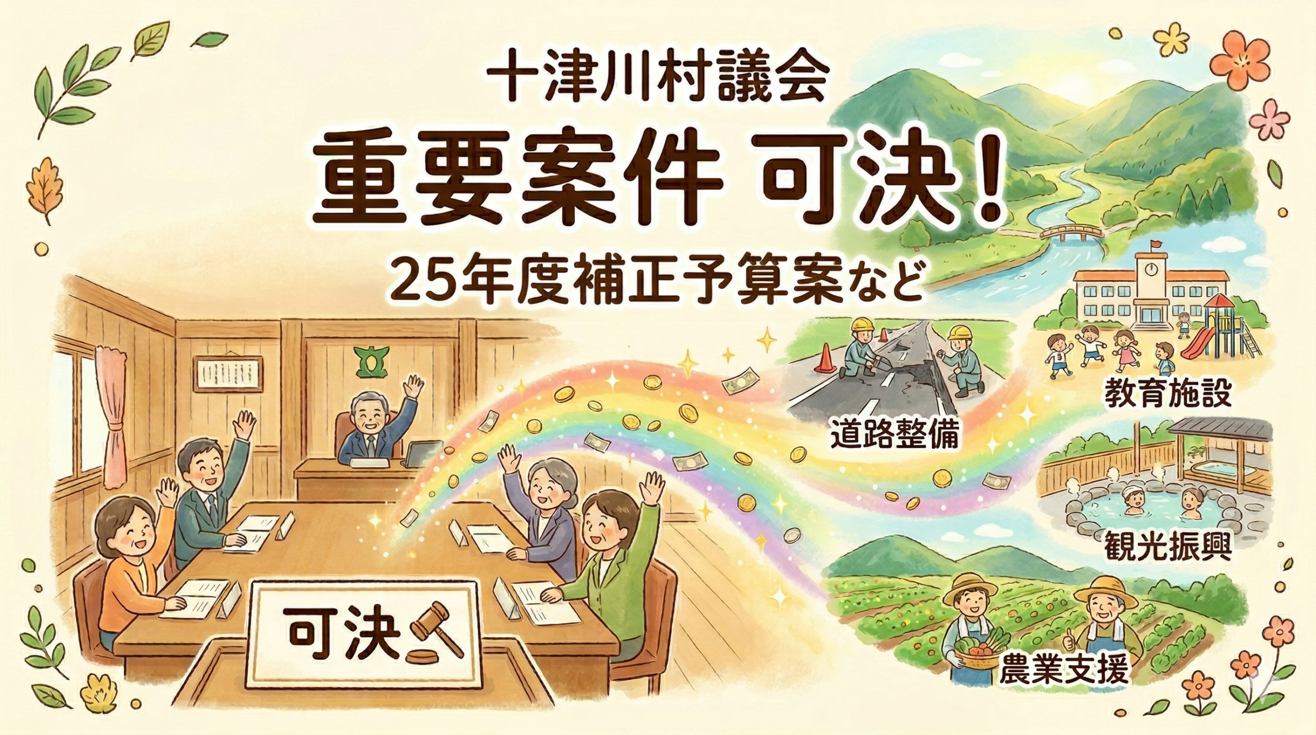 村の運営にとって不可欠な補正予算案は、すでに進行中の事業や新たに必要となった経費に対応するためのものです。今回承認されたこれらの案件は、村民の皆さんの暮らしや、村のこれからの発展に直結する大切な決定となります。